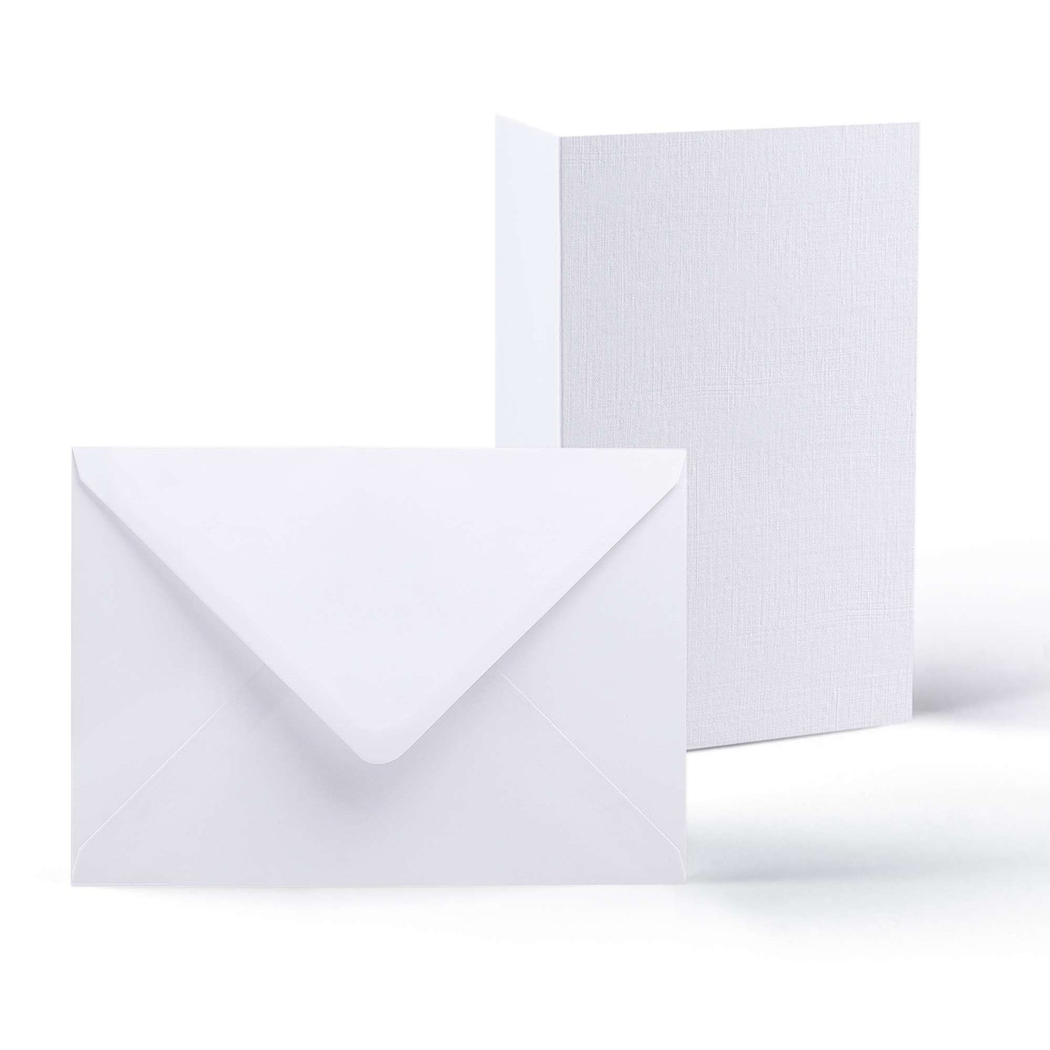 Stilvolles Set mit Leinenkarten (300 g/m²) und Kuverts (100 g/m²).